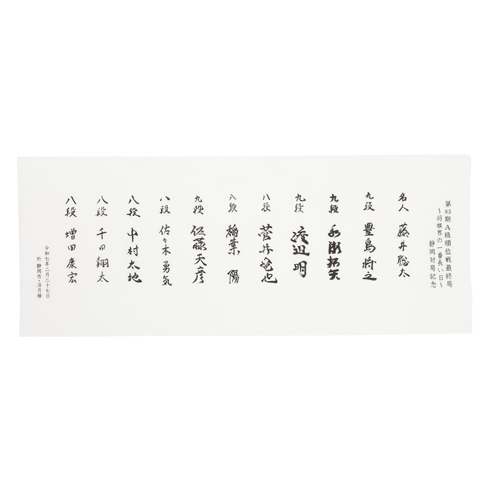 署名棋士は藤井聡太名人、豊島将之九段、永瀬拓矢九段、渡辺明九段、菅井竜也八段、稲葉陽八段、佐藤天彦九段、佐々木勇気八段、中村太地八段、千田翔太八段、増田康宏八段