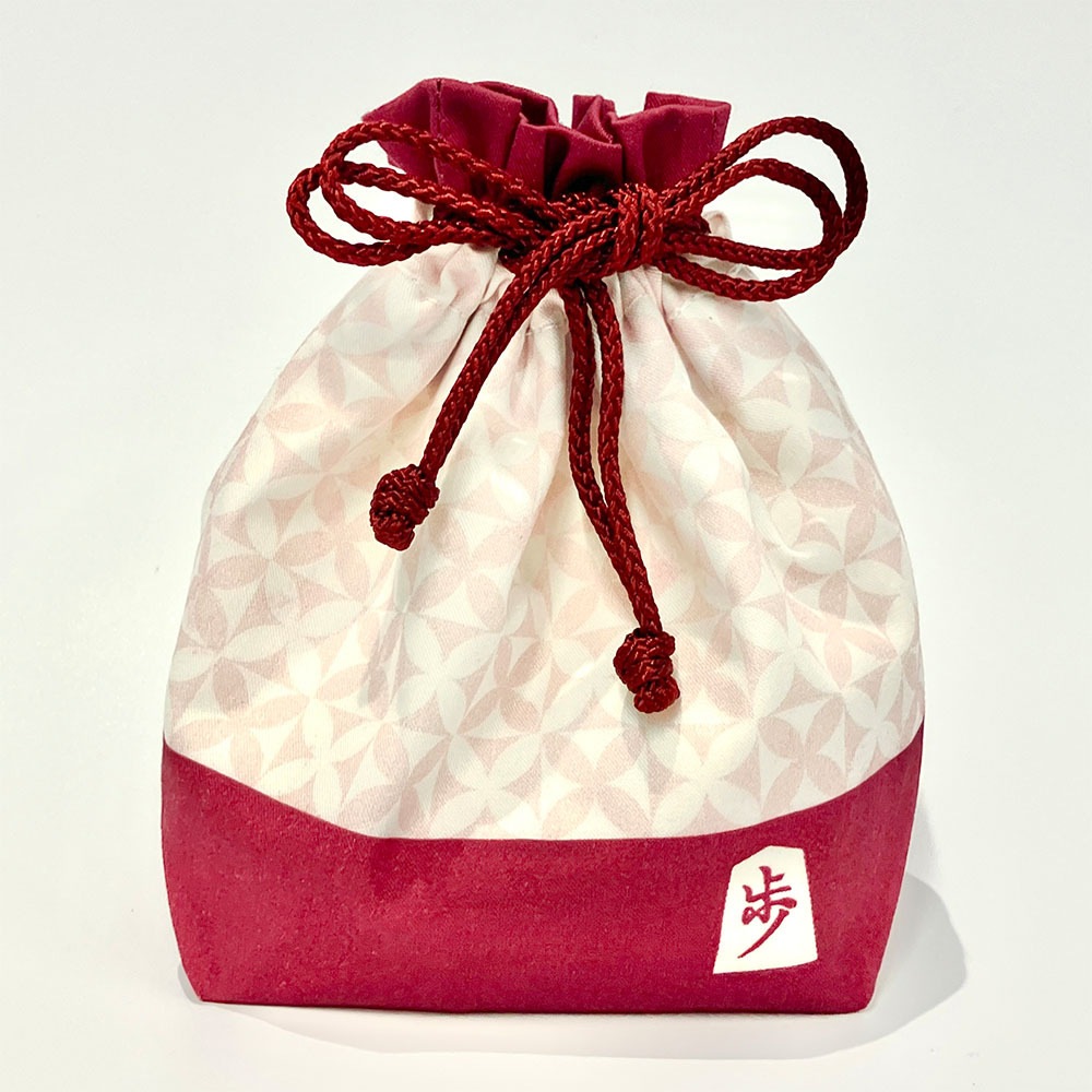 持ち運びに便利な綿製のオリジナル駒袋付きです。ご注文時にカラーをお選びください。