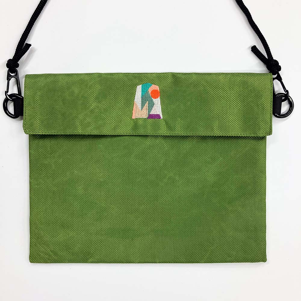 普段使いにぴったりなシンプルデザインのサコッシュです。フラップ部分には「駒テラス西参道」のロゴが刺繍されています。