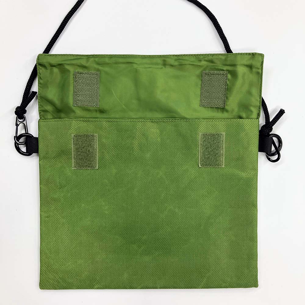本体はマジックテープでフタをすることができ、ひもはお好みの長さに調整可能です。