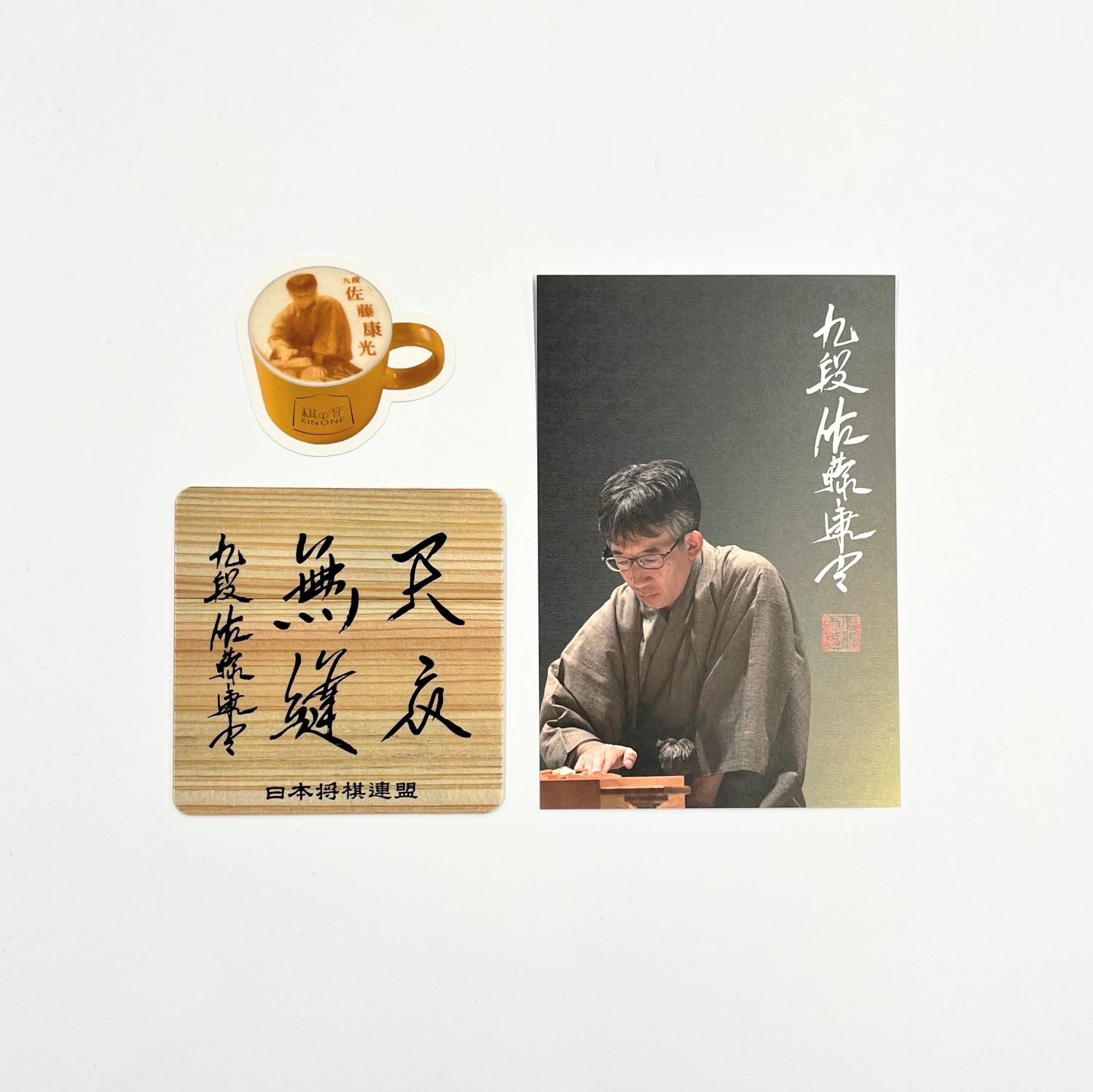 11月の棋士カプチーノだった佐藤康光九段のポストカード・木製コースター・ステッカーの3点セットです!