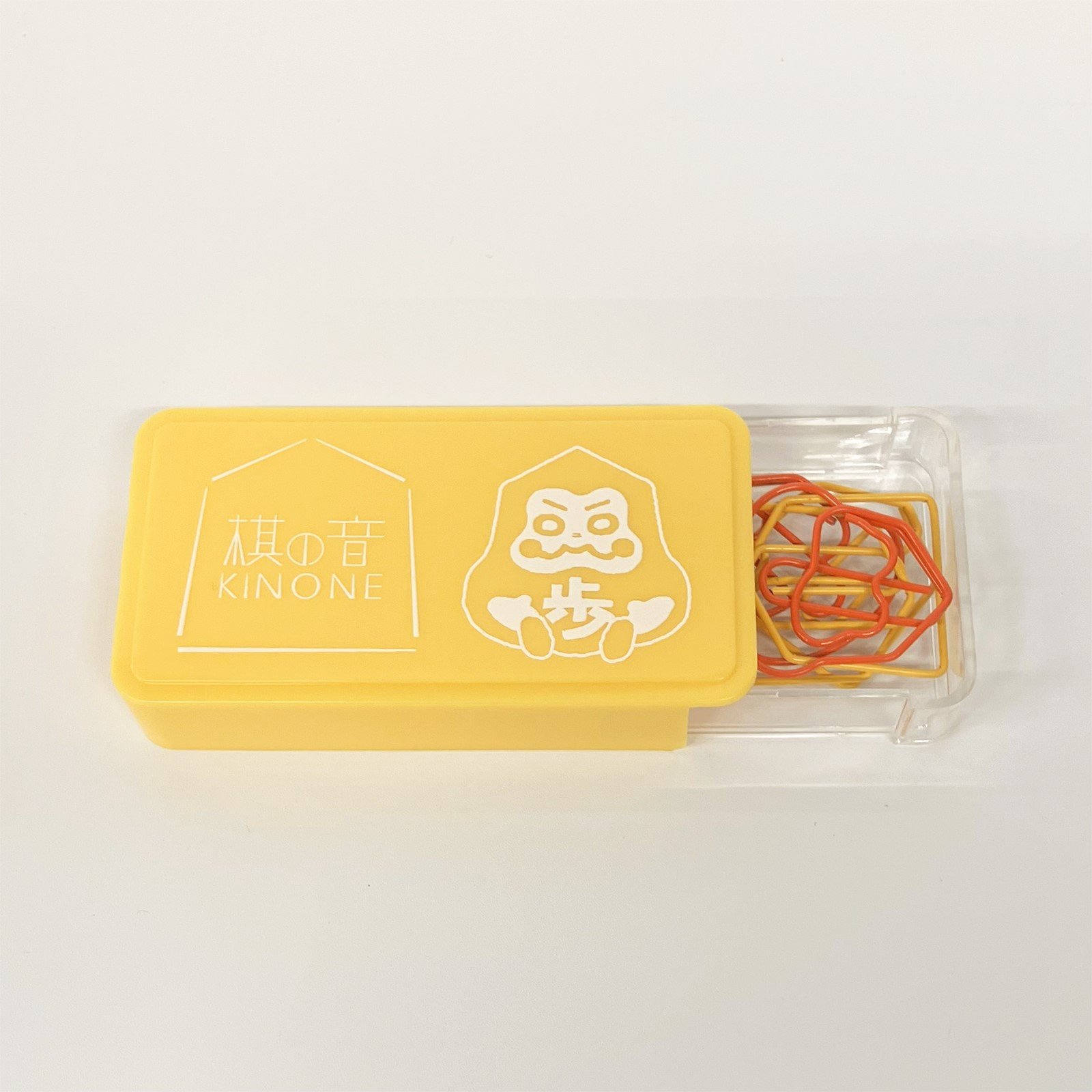 コンパクトなケースに入った12個(棋の音型6個・コマタロウくん型6個)のゼムクリップです。