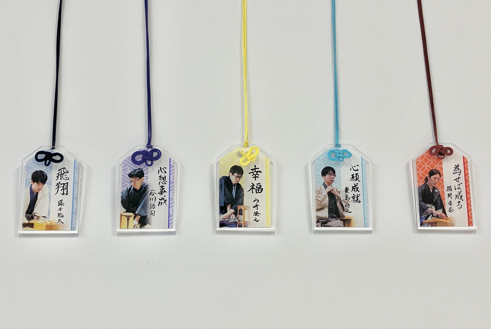 棋士・女流棋士の和装写真&揮毫をデザインした「アクリルお守り」が登場!